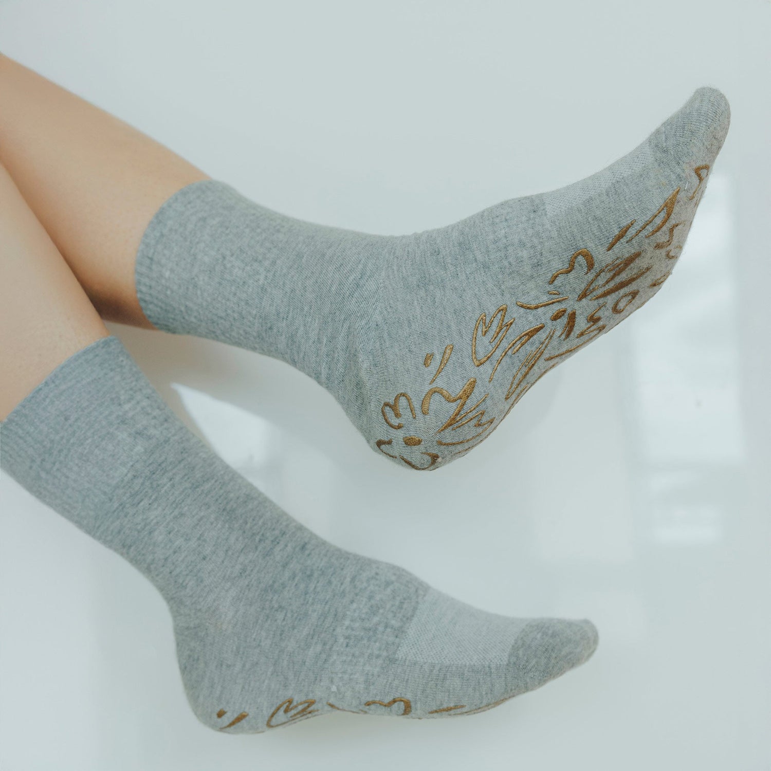 New- Adult Organic Cotton Non-Slip Socks- Grey- 2 Pairs